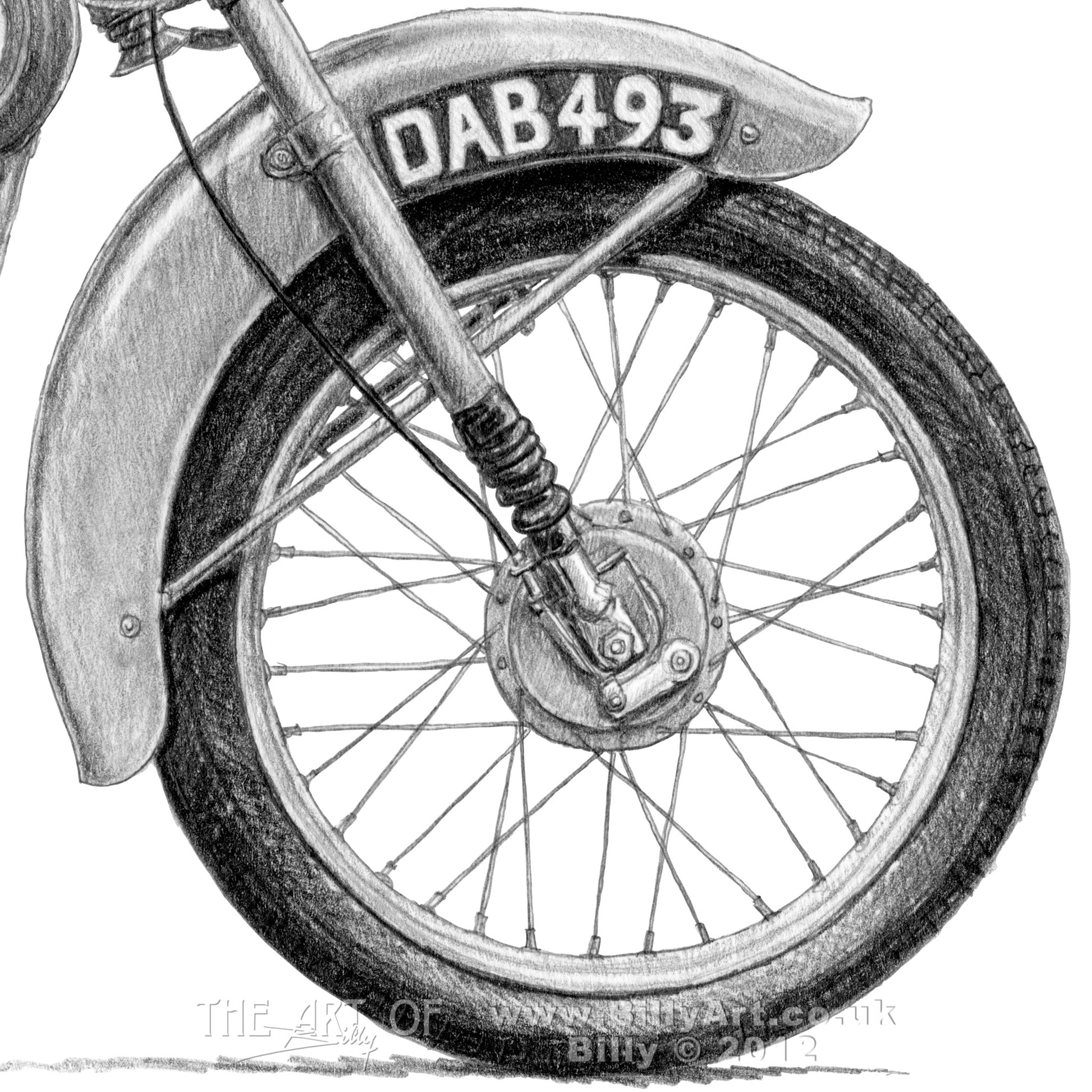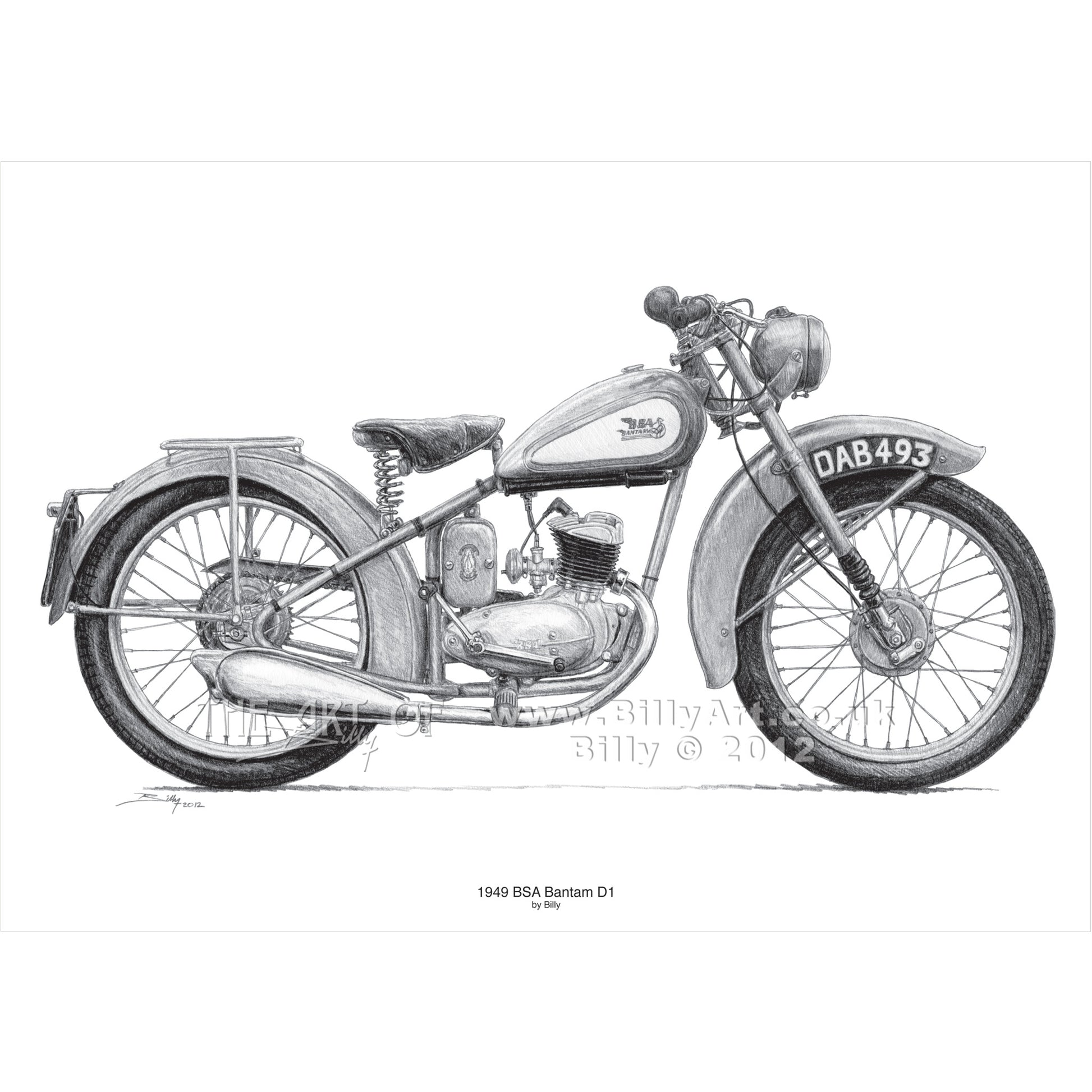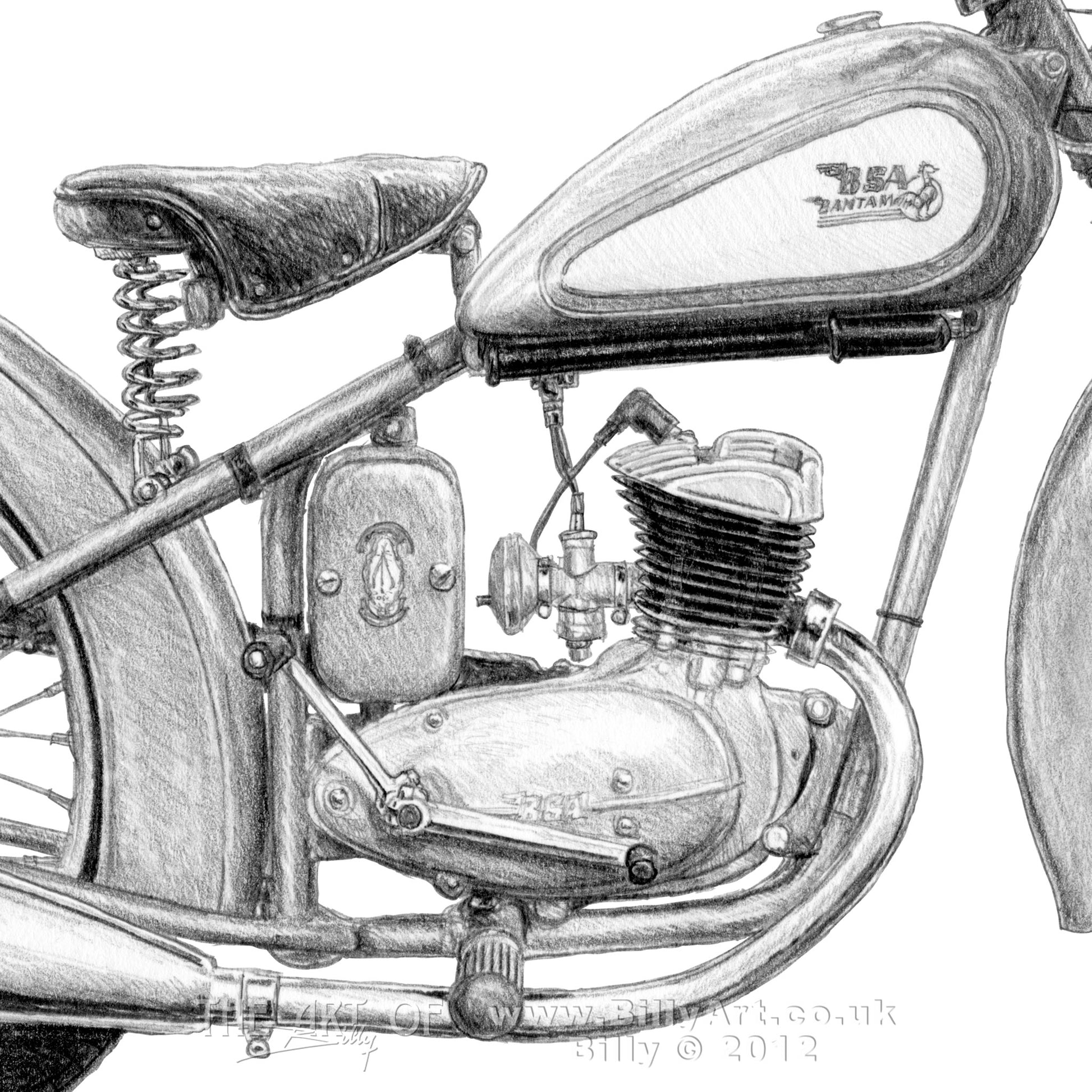 The lovely BSA Bantam taken from the pencil drawing by Billy. Limited Edition Print of the 1949 BSA Bantam D1.