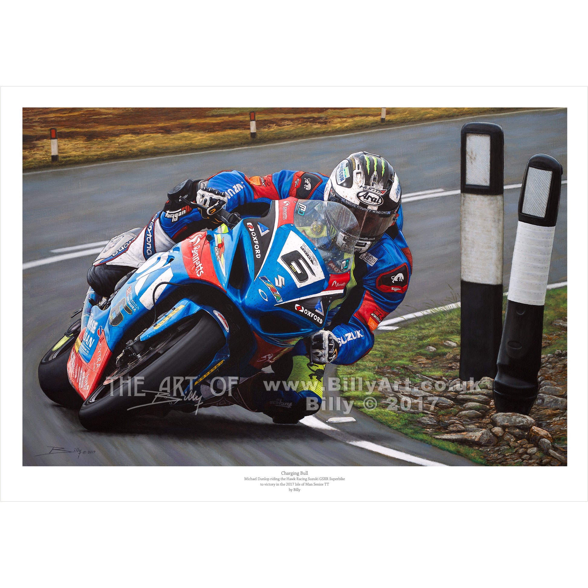 'Charging Bull' - Michael Dunlop 2017 Isle of Man Senior TT limited edition fine art print by Billy of only 500 copies and 50 Artist Proofs.