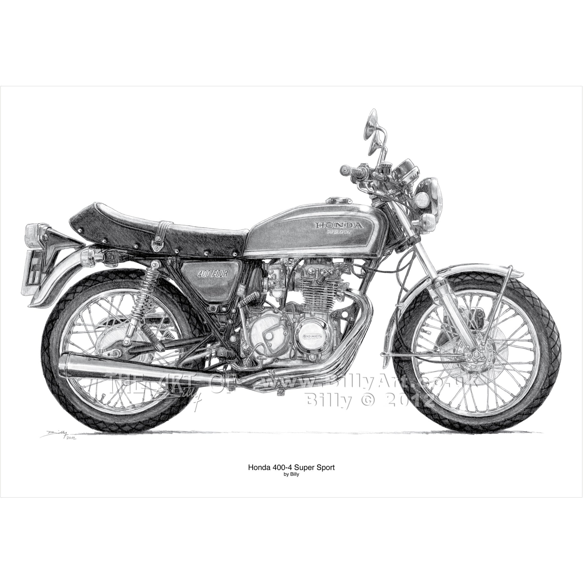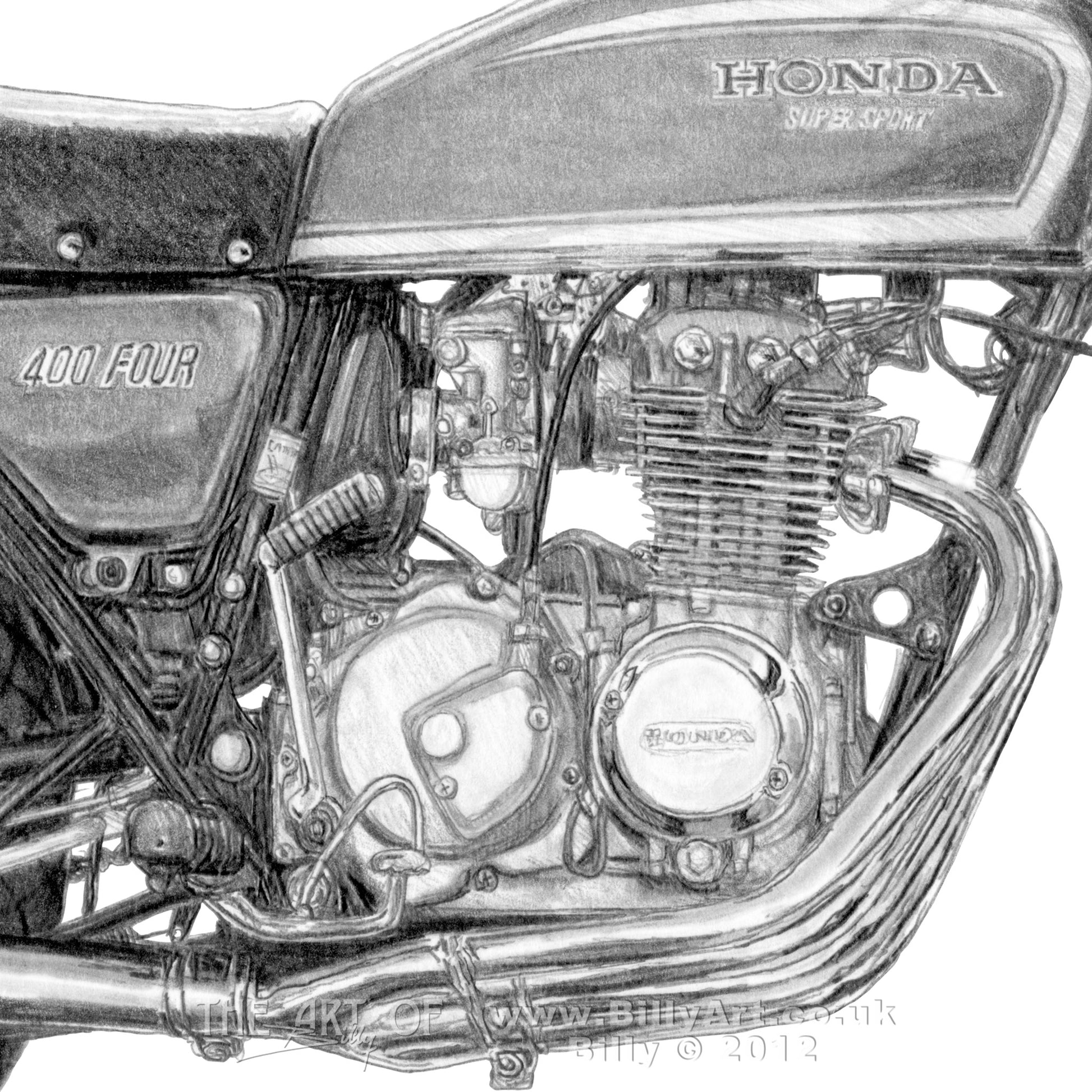 The Honda 400-4 Supersport taken from the pencil drawing by Billy.