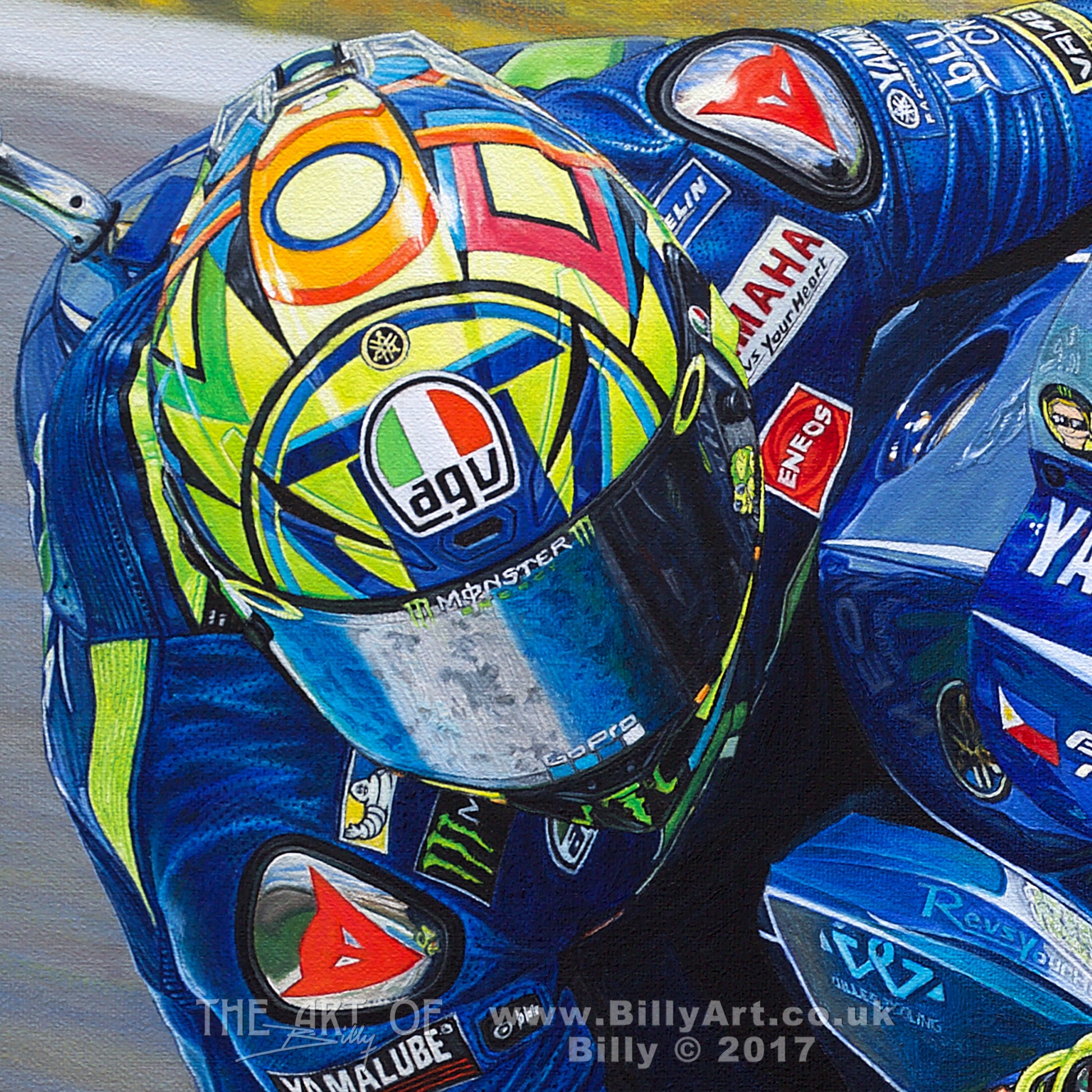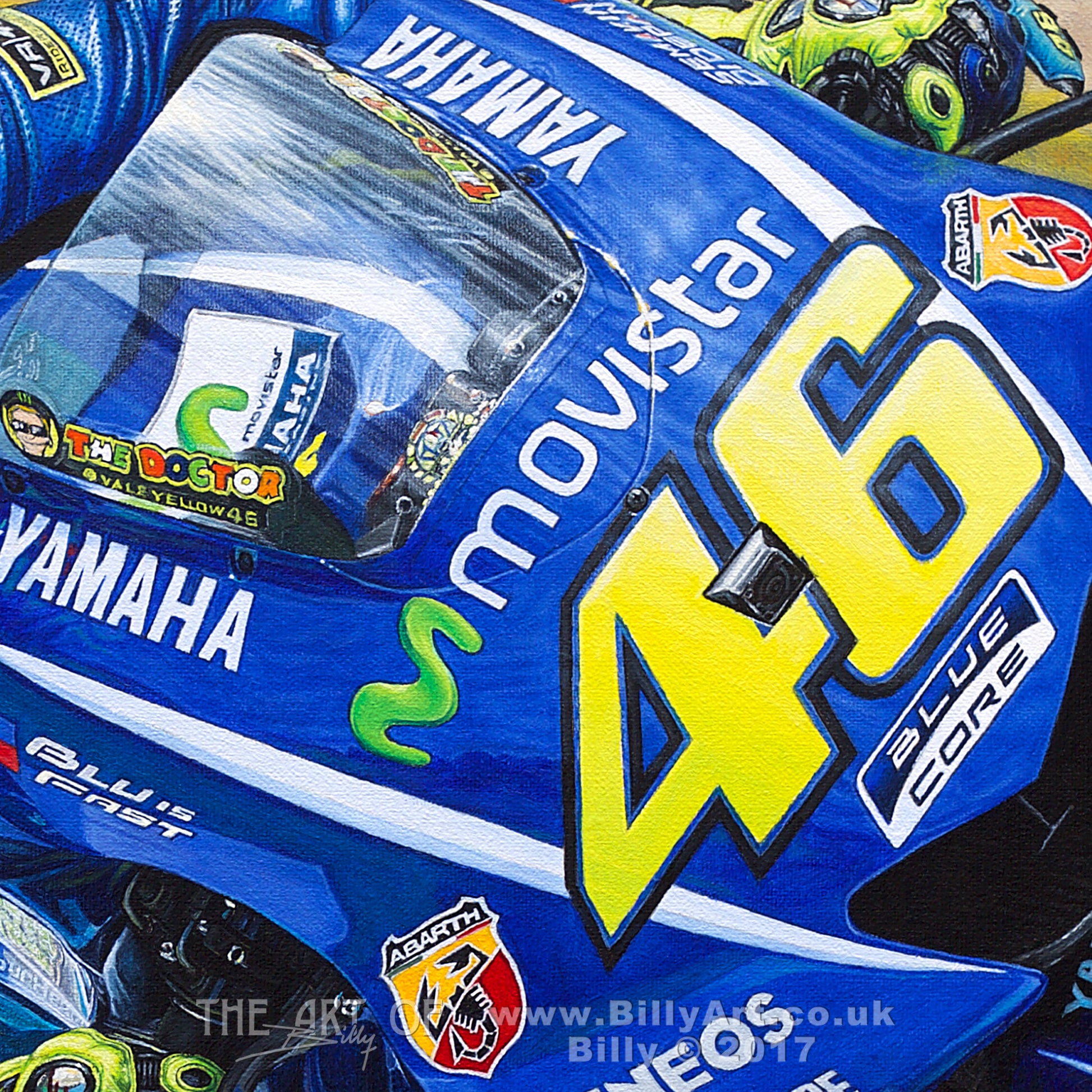 This limited edition of 850 Giclée fine art prints of Rossi riding the 2017 Yamaha YZR-M1 MotoGP race bike is taken from Billy's oil on linen canvas painting.