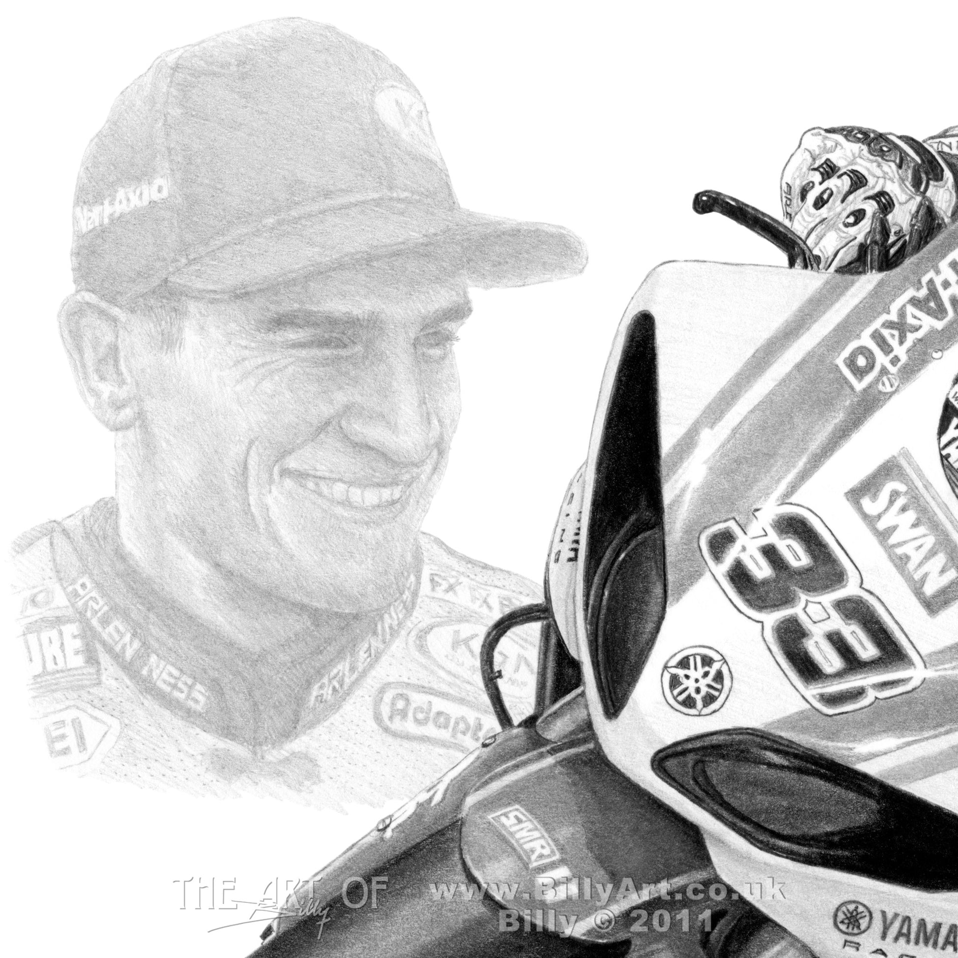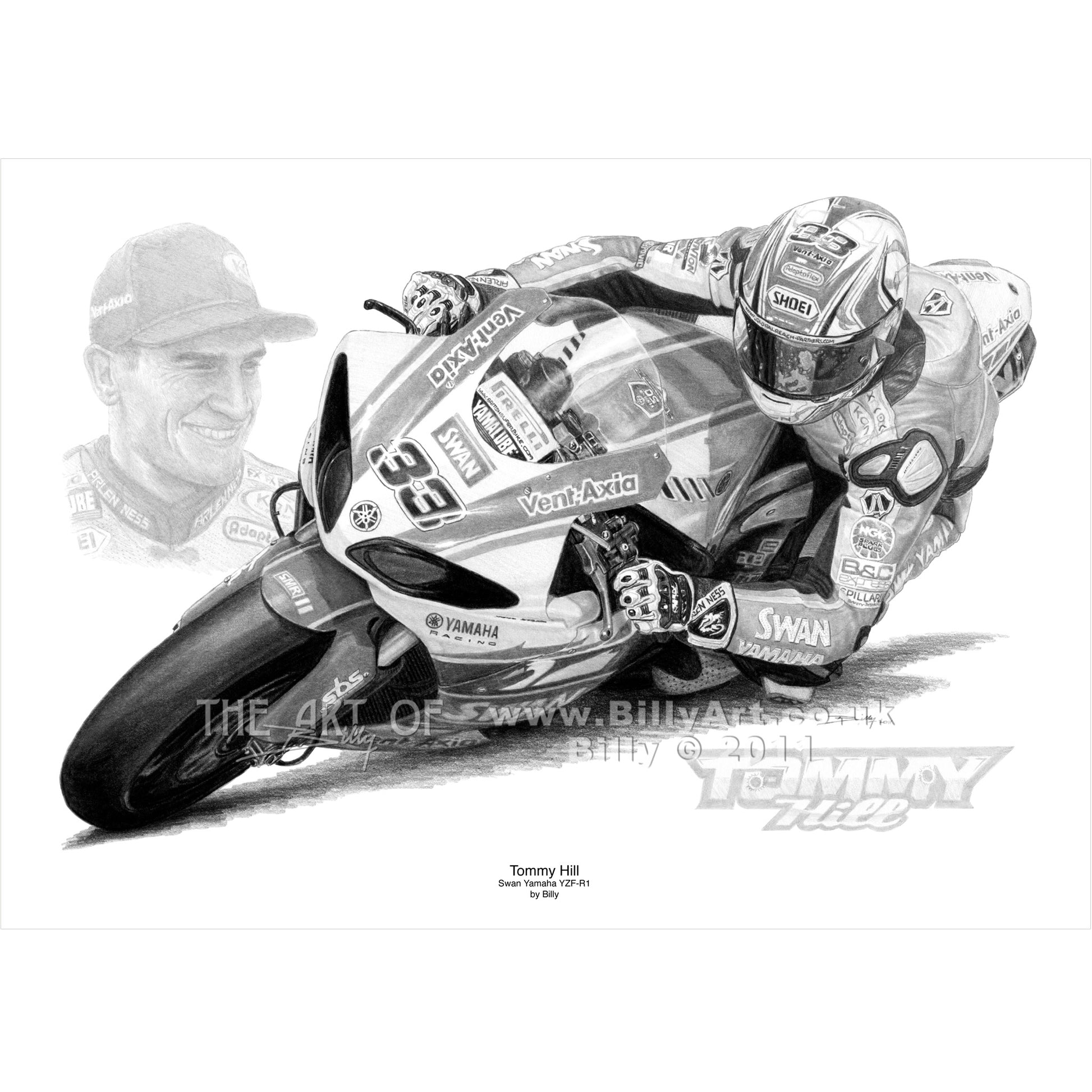 The drawing of Tommy Hill took Billy about a week to complete and would make a great addition to any Tommy Hill fan's collection. The Tommy Hill limited edition print riding the Swan Yamaha is of 100 prints signed and numbered by Billy and has worldwide shipping included in the price.